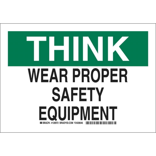 Brady, 128971, 7" x 10" Polystyrene Think Wear Proper Safety Equipment Sign