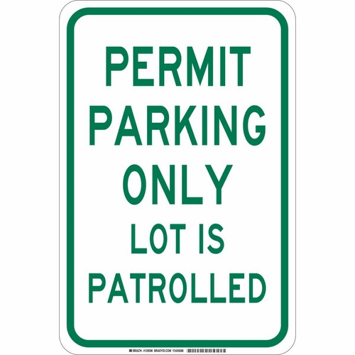 Brady, 129595, 18" x 12" Polystyrene Permit Parking Only Lot Is Patrolled Sign