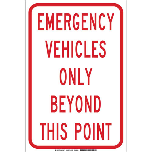 Brady, 129671, 18" x 12" Polyester Emergency Vehicles Only Beyond This Point Sign