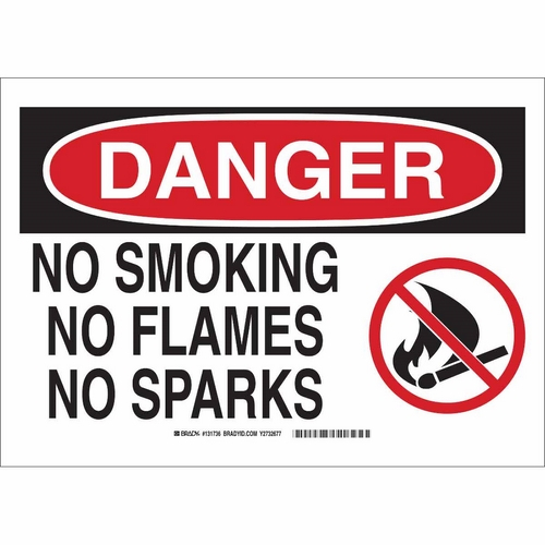 Brady, 131733, 7" x 10" Polystyrene Danger No Smoking No Flames No Sparks Sign