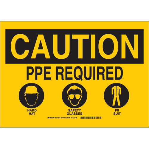 Brady, 131973, 10" x 14" B-302 Caution Ppe Required Hard Hat Safety Glasses Fr Suit Sign