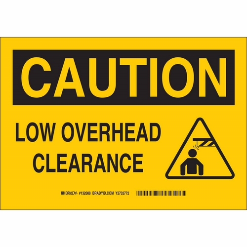 Brady, 132087, 10" x 14" Polystyrene Caution Low Overhead Clearance Sign
