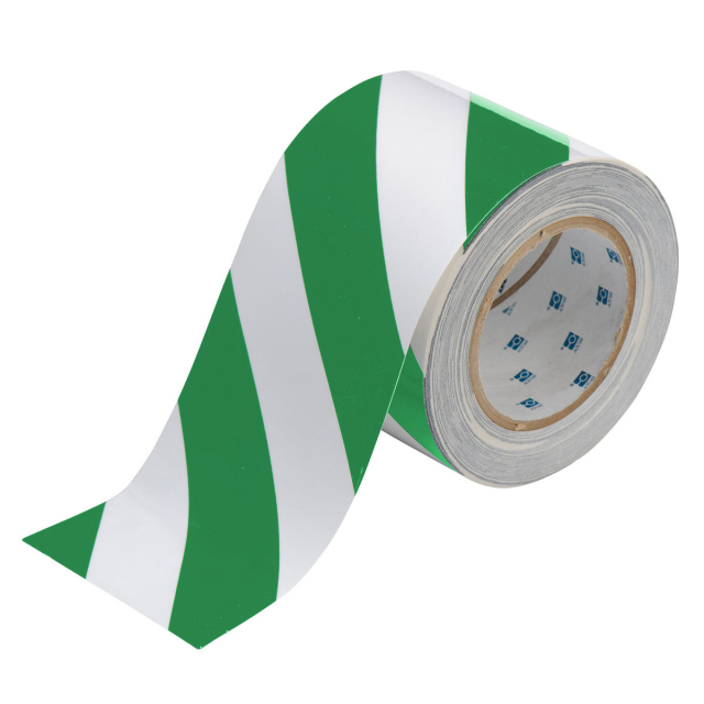 Brady, 132438, 4" x 100' Polyester ToughStripe Floor Marking Tape, Green on White