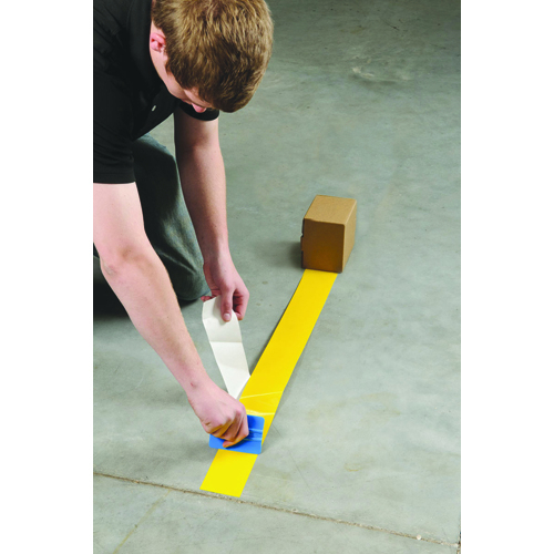 Extremely durable ToughStripe® floor marking tapes are made of rugged polyester with ultra-aggressive adhesive and hold up against forklift traffic.
