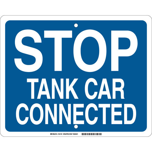 Brady 134191 Stop Tank Car Connected Sign, White on Blue