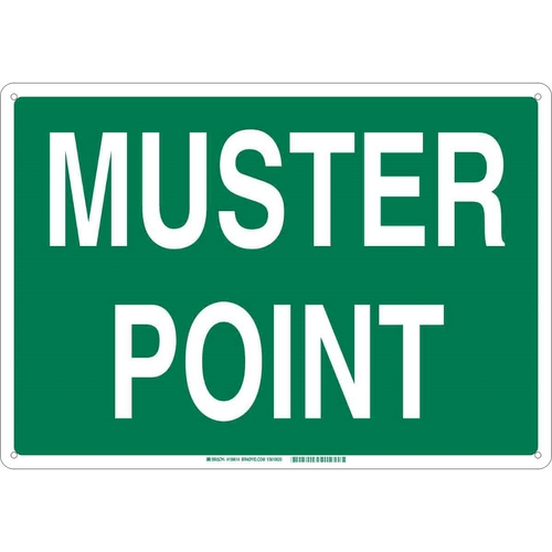 Save 3% each on Brady 139619 10" x 14" Aluminum Muster Point Sign, Green on White when you purchase 10 or more