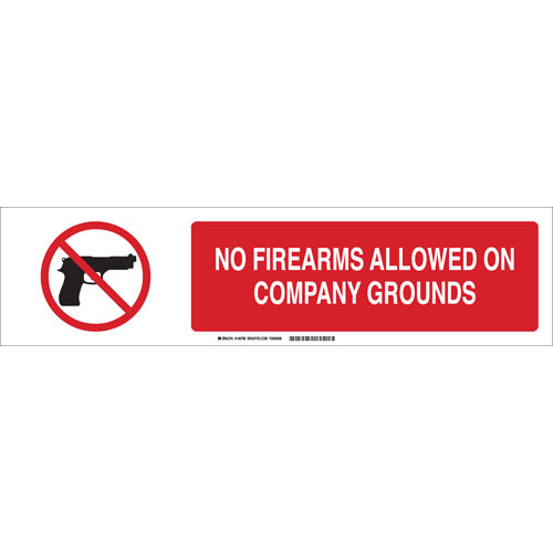 Brady, 140768, 6" x 23.875" Polystyrene No Firearms Allowed On Company Grounds Sign