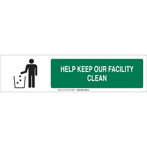 Save 5% each on Brady 140809 6" x 23.875" Aluminum Help Keep Our Facility Clean Sign when you purchase 25 or more