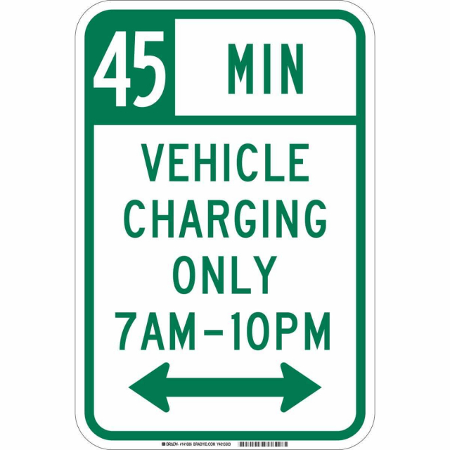 Save 1% each on Brady 141686 "45 Min Vehicle Charging Only 7 Am-10 Pm" Sign when you purchase 5 or more