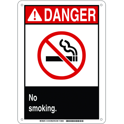 Brady, 141910, 14" x 10" Aluminum Danger No Smoking. Sign, Black/Red on White