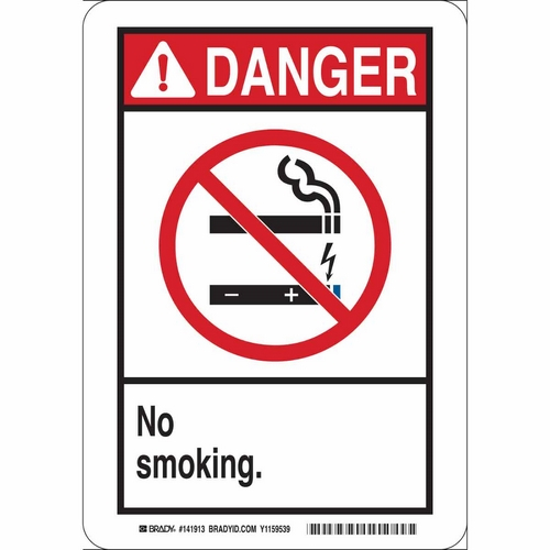 Brady, 141914, 10" x 14" Polyester Danger No Smoking. Sign, Black/Red on White