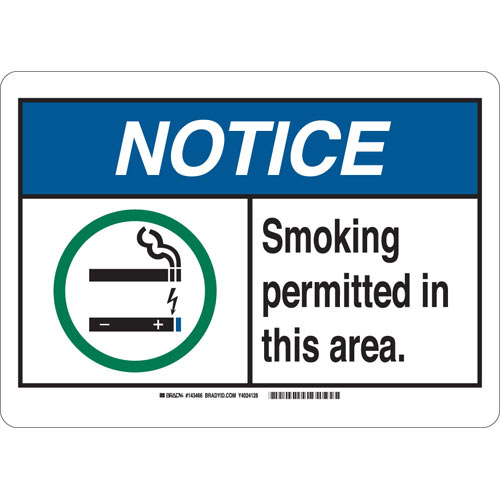 Brady, 143466, 10" x 14" Polyester Notice Smoking Permitted In This Area. Sign