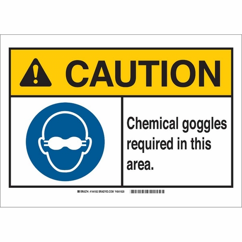 Brady, 144178, 7" x 10" Polyester Caution Chemical Goggles Required In This Area. Sign