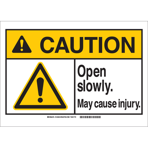 Save 3% each on Brady 144325 Polyester ANSI Sign, Legend: Open Slowly when you purchase 10 or more