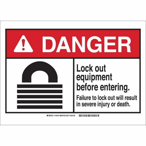 Brady, 144492, 7" x 10" B-401 Danger Lock Out Equipment Before Entering... Sign