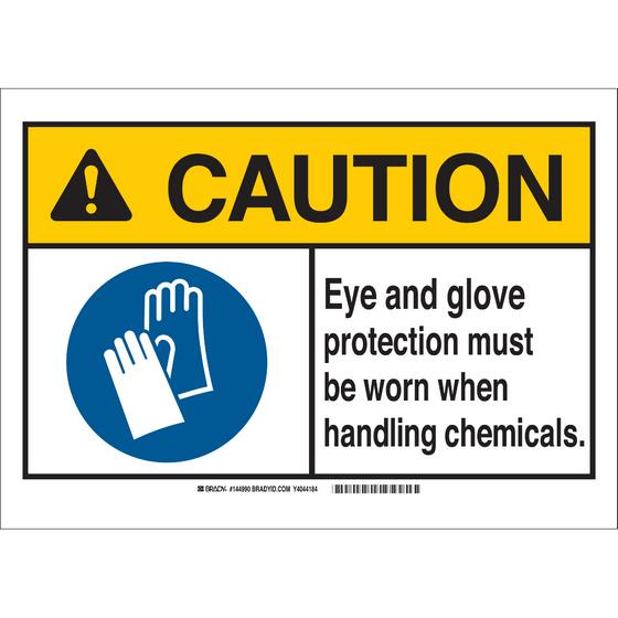 Brady, 144991, 7"x10" Plastic ANSI Sign, Legend: Eye and Glove Protection Must Be Worn...