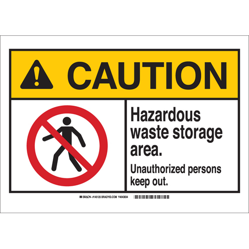 Brady, 145125, 10"x14" ANSI Sign, Legend: Hazardous Waste Storage Area Unauthorized...