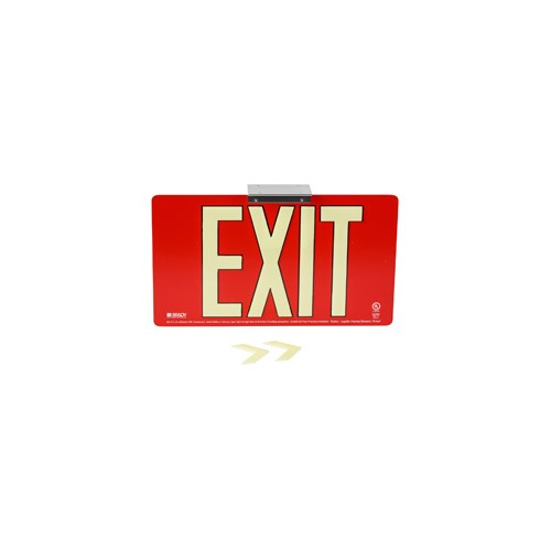 Brady, 145533, 9"x15.75" Red Composite Aluminum BradyGlo "Exit" UL Sign, Double Bracket