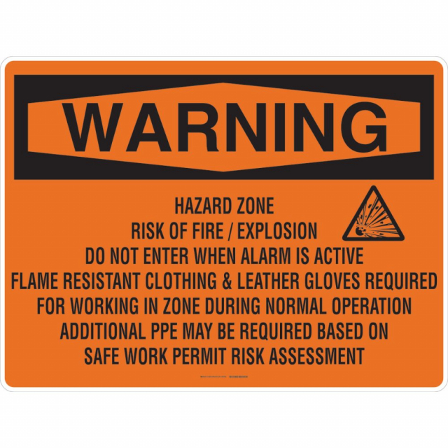 Brady, 145639, Warning Hazard Zone Risk of Fire Explosion Do Not Enter When Alarm Is Active Sign