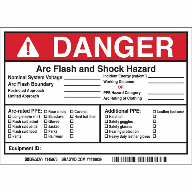 Save 3% each on Brady 145975 Danger Arc Flash and Shock Hazard Label when you purchase 10 or more