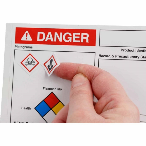 Write-On GHS labels from Brady include write-in areas for chemical-specific information.