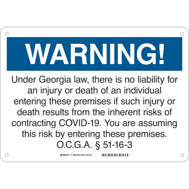 Keep your guests informed of their risks and responsibilites with this COVID-19 Liability Sign.