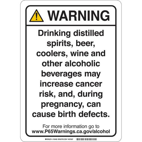 Brady 150450 Sign "Warning California Prop 65 Alcohol"