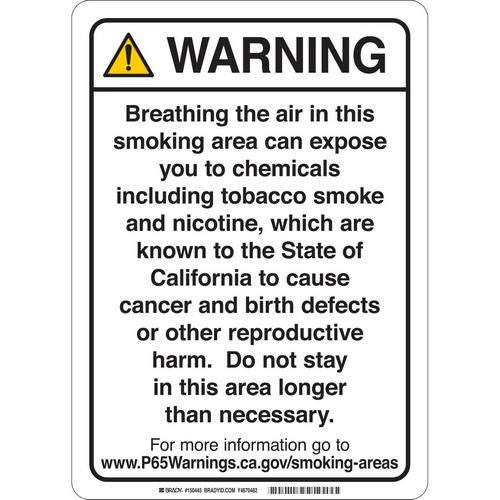 Brady Corporation, 150482, Sign "Warning California Prop 65 Smoking", 10" x 7"