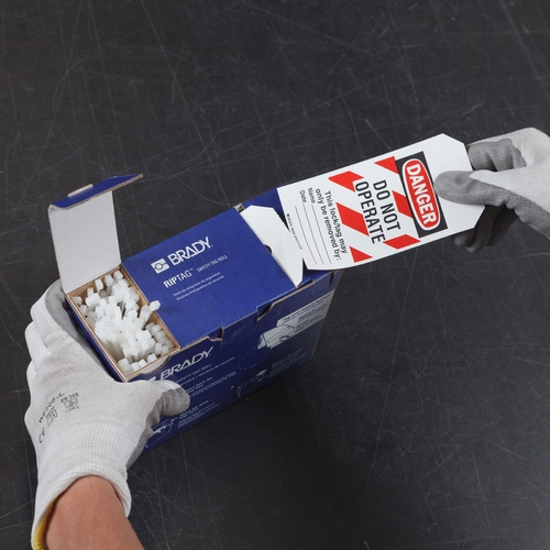 Take it with you! RipTag Safety Tag Roll is your complete and convenient take-it-with-you system for tagging hazardous areas in your facility. Make safety more simple with this easy-to-dispense solution. All-in-one portable bulk roll of tags with cable ties for quick attachment. Strong stuff - exceeds OSHA's 50 lbs. pull force tagout regulation. Pick your quantity. Long-lasting identification you've come to expect from Brady. Easy-to-store system - perforated tags to tear off what you need when you need it.