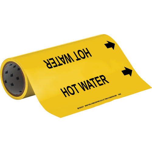 Brady, 15545, 12" x 30' Vinyl Roll Form Pipe Marker: Hot Water, Black on Yellow