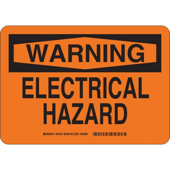 Brady, 20202, 10" x 14" Fiberglass Warning Electrical Hazard Sign, Black on Orange