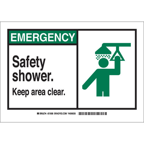 Brady, 21808, 7"x10" B-401 Emergency Safety Shower. Keep Area Clear. Sign