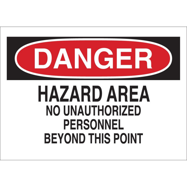 Brady, 22099, 7"x10" Danger Hazard Area No Unauthorized Personnel Beyond This Point Sign