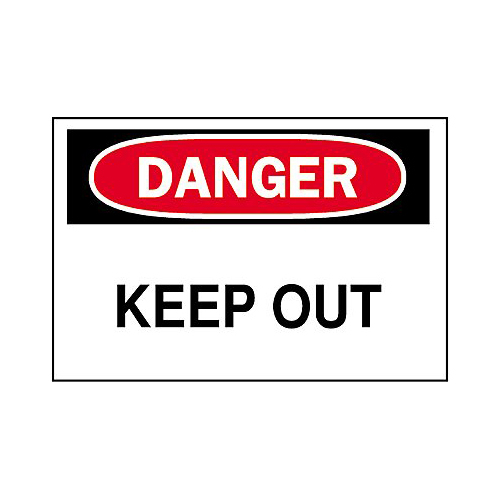 Brady, 22112, 10" x 14" Polystyrene Danger Keep Out Sign, Black/Red on White
