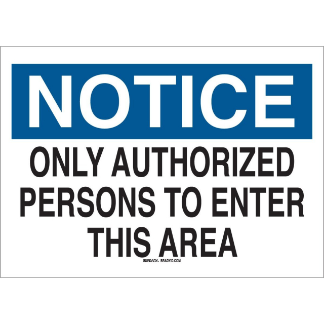 Brady, 22166, 10"x14" B-401 Notice Only Authorized Persons To Enter This Area Sign