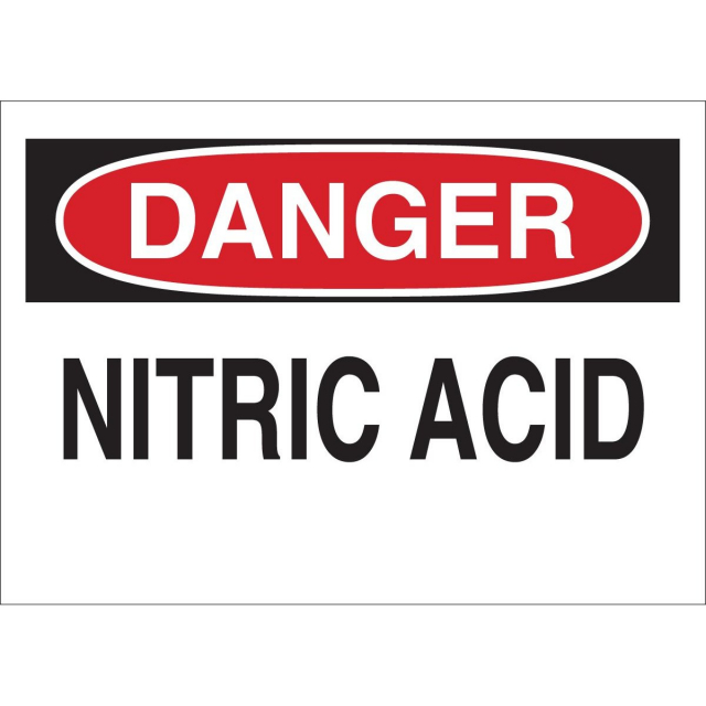 Brady, 22329, 7" x 10" Polystyrene Danger Nitric Acid Sign, Black/Red on White