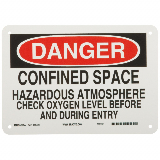 Brady, 22429, 7"x10" B-401 Danger Confined Space Hazardous Atmosphere Sign