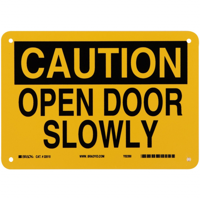 Brady, 22515, 7" x 10" Polystyrene Caution Open Door Slowly Sign, Black on Yellow