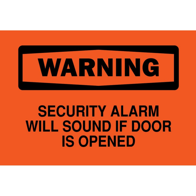 Brady, 22545, 7"x10" B-401 Warning Security Alarm Will Sound If Door Is Opened Sign