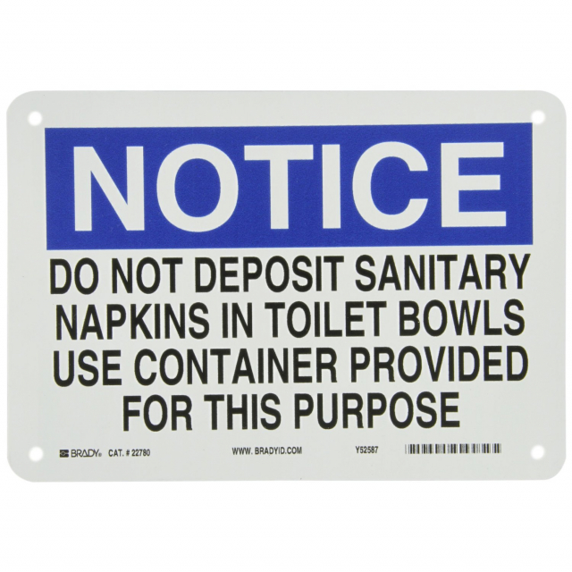 Brady, 22780, Notice Do Not Deposit Sanitary Napkins in Toilet Bowls Use... Sign