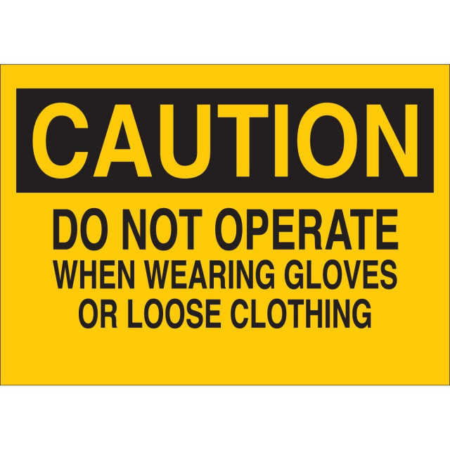 Brady, 22877, 7"x10" Caution Do Not Operate When Wearing Gloves Or Loose Clothing Sign