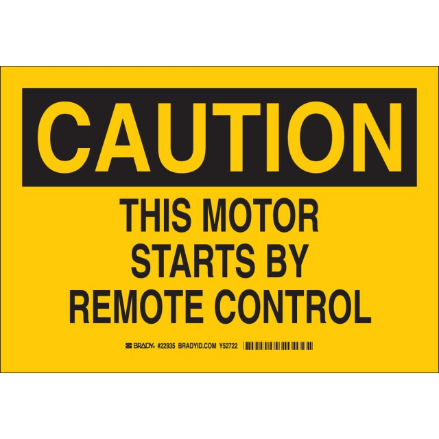 Brady, 22935, 7" x 10" B-401 Caution This Motor Starts By Remote Control Sign