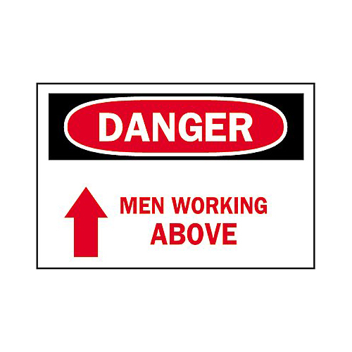 Brady, 23012, 10" x 14" Polystyrene Danger Men Working Above Sign, Black/Red on White