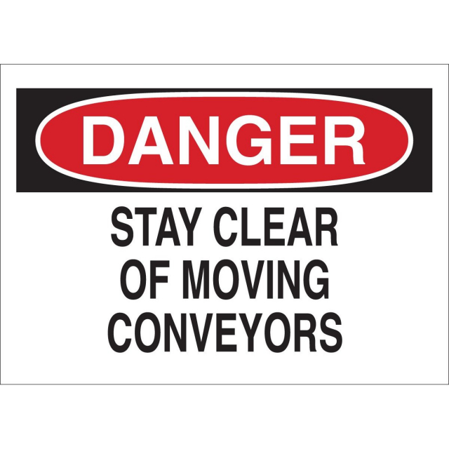 Save 5% each on Brady 23033 7"x10" B-401 Danger Stay Clear of Moving Conveyors Sign when you purchase 100 or more