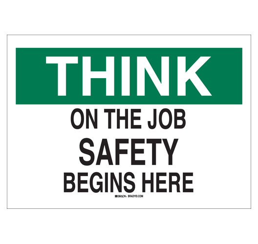Brady, 25334, 10" x 14" Polystyrene Think On the Job Safety Begins Here Sign