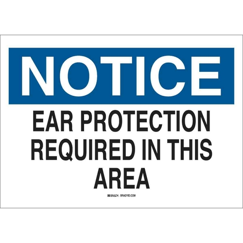 Brady, 25488, 7" x 10" Polystyrene Notice Ear Protection Required in This Area Sign