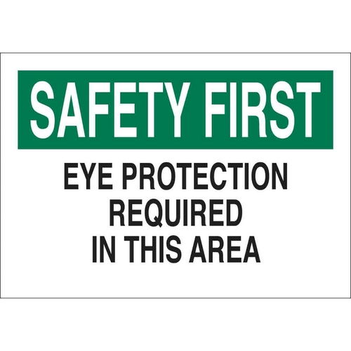 Brady, 25578, 7" x 10" B-401 Safety First Eye Protection Required in This Area Sign
