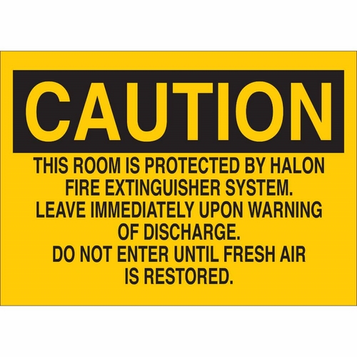 Brady, 25644, 7"x10" B-401 Caution This Room Is Protected By Halon Fire... Sign