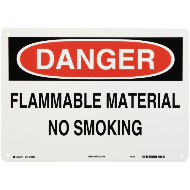 Brady, 25669, 10" x 14" Polystyrene Danger Flammable Material No Smoking Sign
