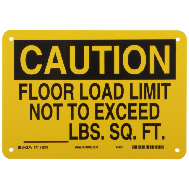 Brady 25751 Load Limit Not To Exceed ____Lbs Sq Ft Sign